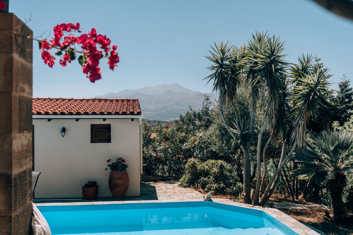 Villa Yucca Palm is a detached modern Villa with a large swimming pool and ample gardens. The light-filled villa has two bedrooms each with Queen bed and two bathrooms. One bathroom has a toilet and shower, while the other master bathroom has a toilet, bathtub and shower. The generously sized pool with its surrounding terrace invites you to swim with the whole family. There is a newly built barbecue and an outdoor shower. The magnificent evening view of the highest mountain, Psiloritis, and the peaceful atmosphere of Villa Yucca Palm guarantee relaxation and recreation. The Villa is a short distance to the beach and has wonderful and spectacular mountain views. The Villa comes complete with a full sized kitchen with a dishwasher and all necessary appliances. Situated in the Village of Roumeli about 20 minutes from Rethymno or about 5 minutes to the beach by car. Alternatively the provincial town of Perama is about 10 minutes away by car. You will have easy access to the National Road to explore the island. The village has Tavernas, a cafeteria and a supermarket.